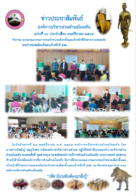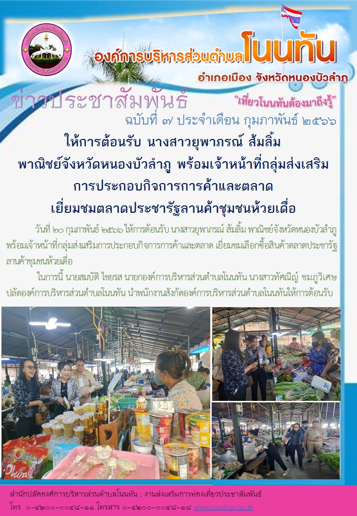 488 นางสาวทัศณีญ์ ชมภูวิเศษ ปลัดองค์การบริหารส่วนตำบลโนนทัน ได้รับเกียรติเป็นแขกรับเชิญ ถ่ายทำรายการ เพื่อการส่งเสริมการท่องเที่ยวในจังหวัดหนองบัวลำภู [ 26 เม.ย. 2564 ]141