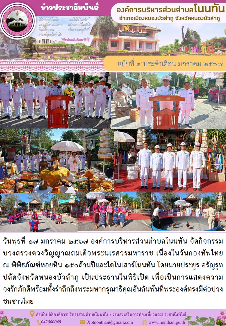 94 องค์การบริหารส่วนตำบลโนนทัน จัดกิจกรรม บวงสรวงพระวิญญาณสมเด็จพระนเรศวรมหาราช เนื่องในวันคล้ายวันอัญเชิญพระรูปหล่อมาประดิษฐาน ณ ตำบลโนนทัน [ 24 พ.ย. 2566 ]91