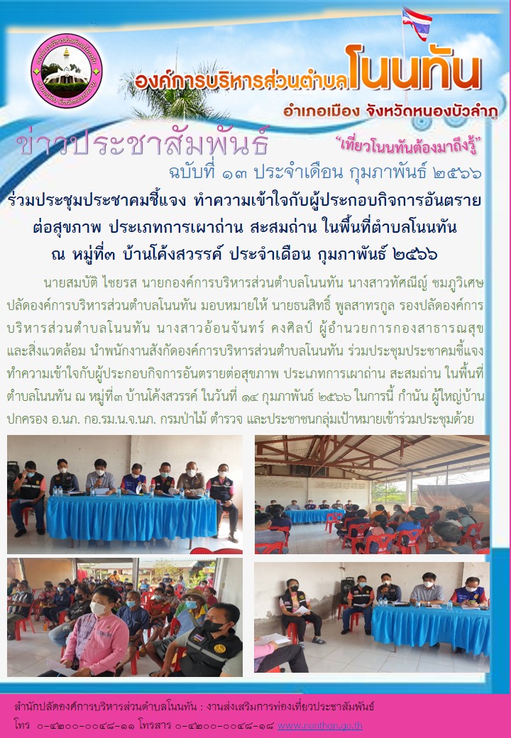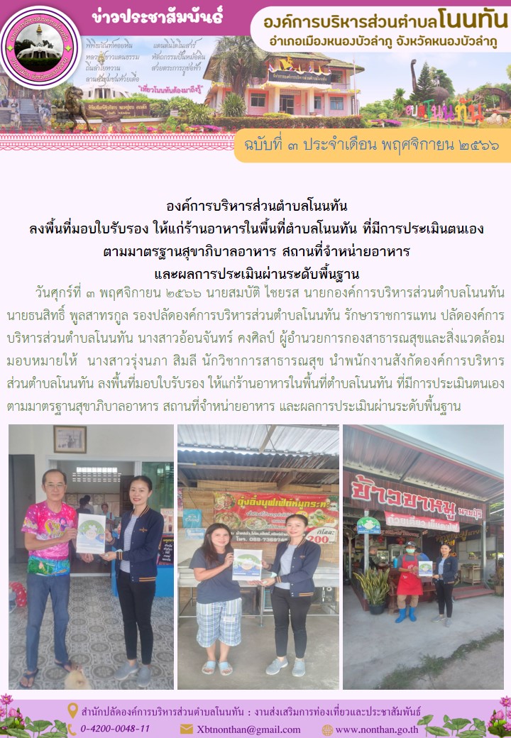 89 องค์การบริหารส่วนตำบลโนนทัน ประชาสัมพันธ์เพื่อให้ความรู้ และข่าวสาร ประจำเดือน พฤศจิกายน ๒๕๖๖ ณ ตลาดประชารัฐลานค้าชุมชนห้วยเดื่อ [ 30 พ.ย. 2566 ]85